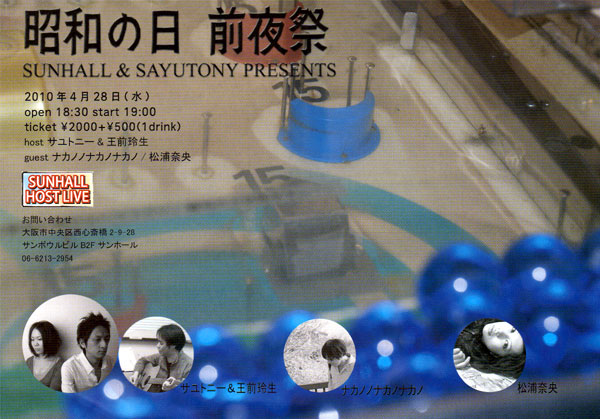 今日はアメリカ村サンホールでサユトニーホストライブ~昭和の日前夜祭~です。