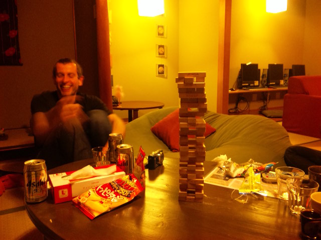 リビングに居た外人さん(短期のスタッフらしい)を交えてジェンガやったり、何故かwiiで対戦したり。